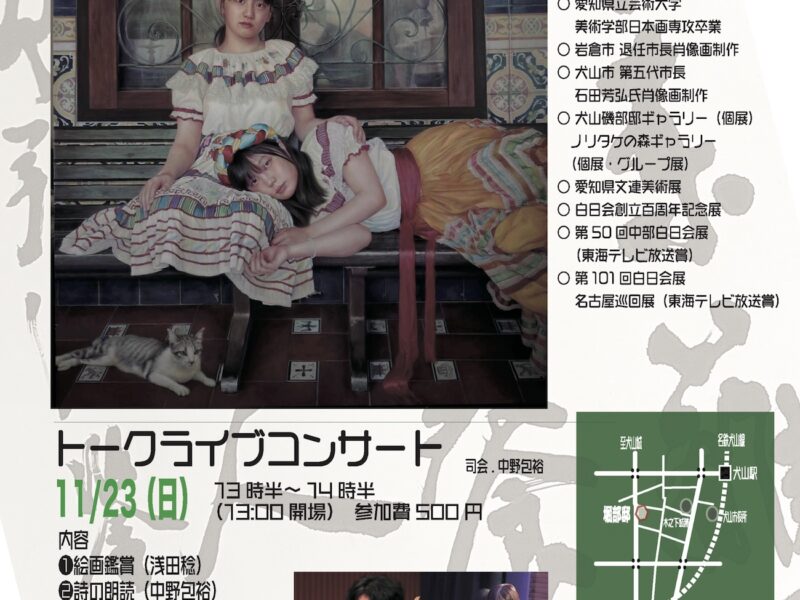 11月12日(水)から24日(月・祝) 木之下城伝承館・堀部邸 開館時間内 トークライブコンサート 11/23 …