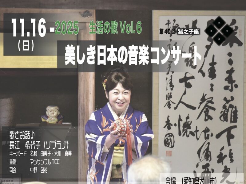 美しき日本の音楽コンサート 生活の歌v.6 第40回 猪之子座 11月16日 日曜日 13:00開場 13:3 …