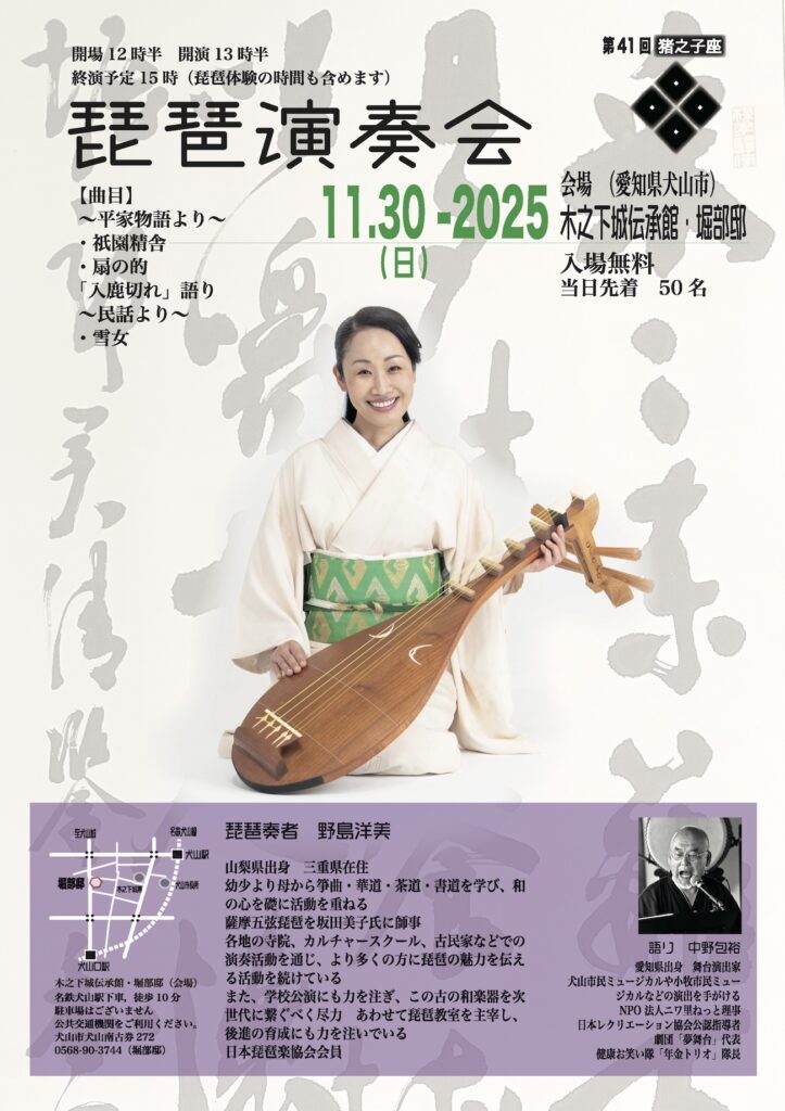 第41回「猪之子座」野島洋美.琵琶演奏会 12:30開場 13:30開演