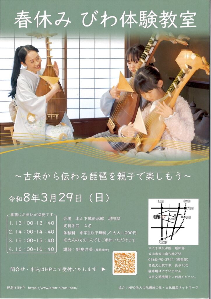 春休み びわ体験教室 3月29日(日曜日)午後 4回 講師:野島洋美(琵琶奏者)