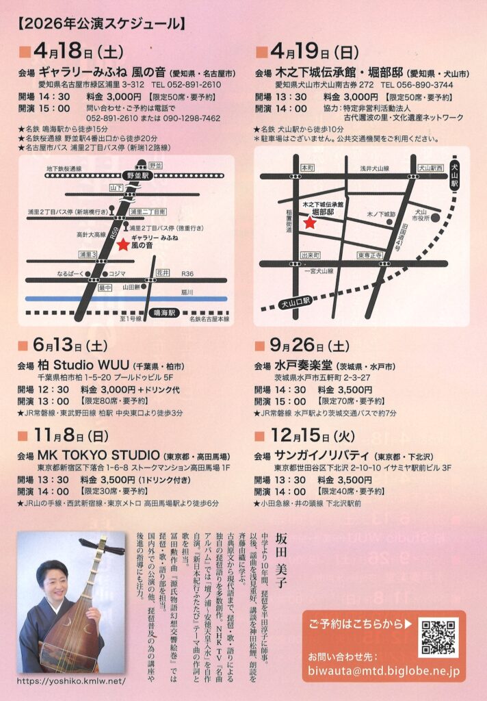 坂田美子の源平琵琶語り&ミニミニ琵琶講座in堀部邸